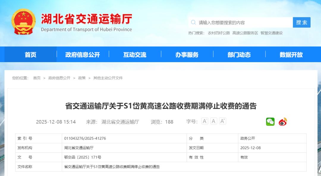 高速免费时代,终于要来了?临近年底,又有多地宣布高速公路停止收费。近日,有市民在四川群众呼声平台发帖询问:成都双流机场高速何时停止收费?成都高速公路股份有限公司回复:“根据相关政策,成都机场高速公路收费截止日期至2025年12月26日,相关信息已在收费站公示牌进行公示。”这意味着,又一条高速公路即将免费通行