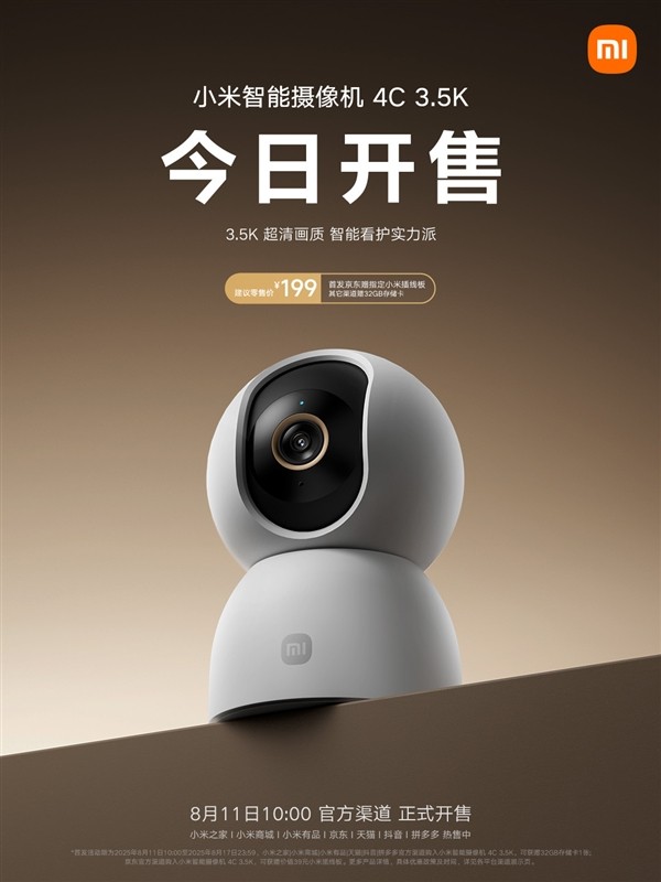 小米推出智能摄像机4C 3.5K:199元起,搭载600万像素与AI识别技术